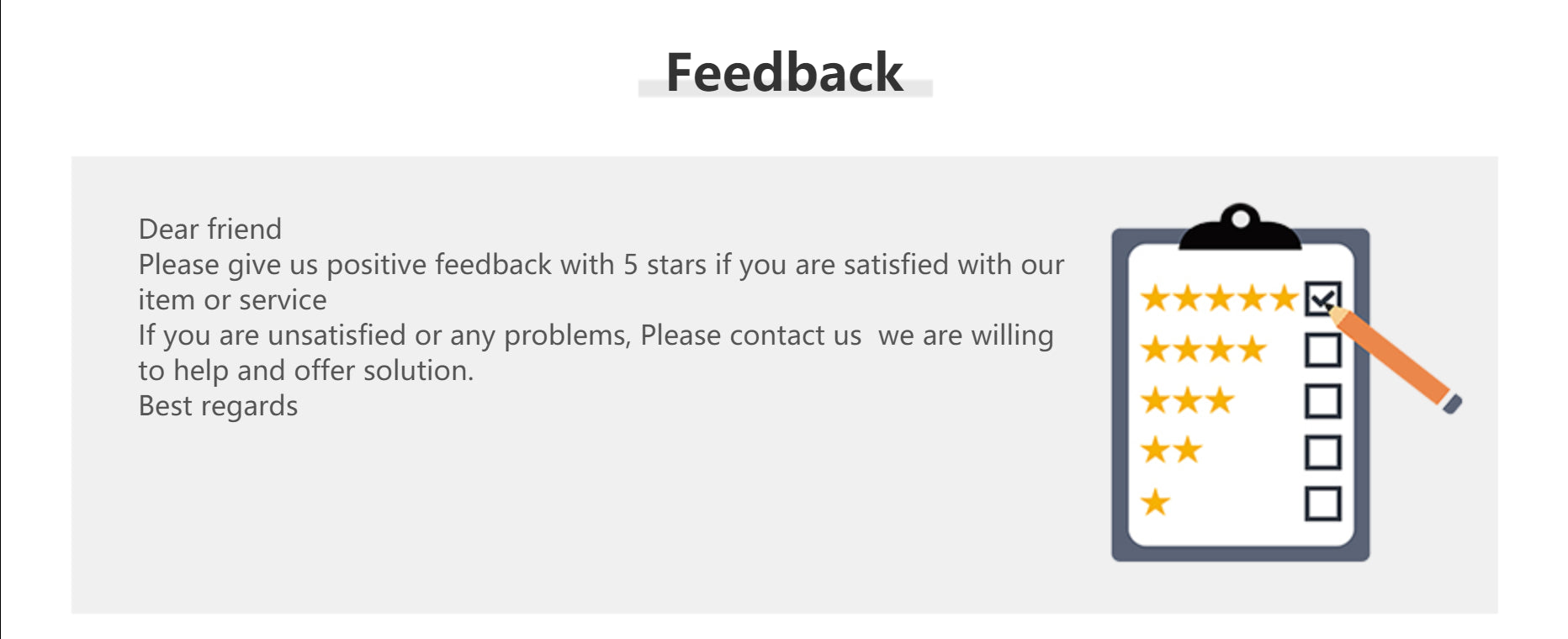Please inspect your order upon reception and contact us immediately if the item is defective, damaged or if you receive the wrong item, so that we can evaluate the issue and make it right.